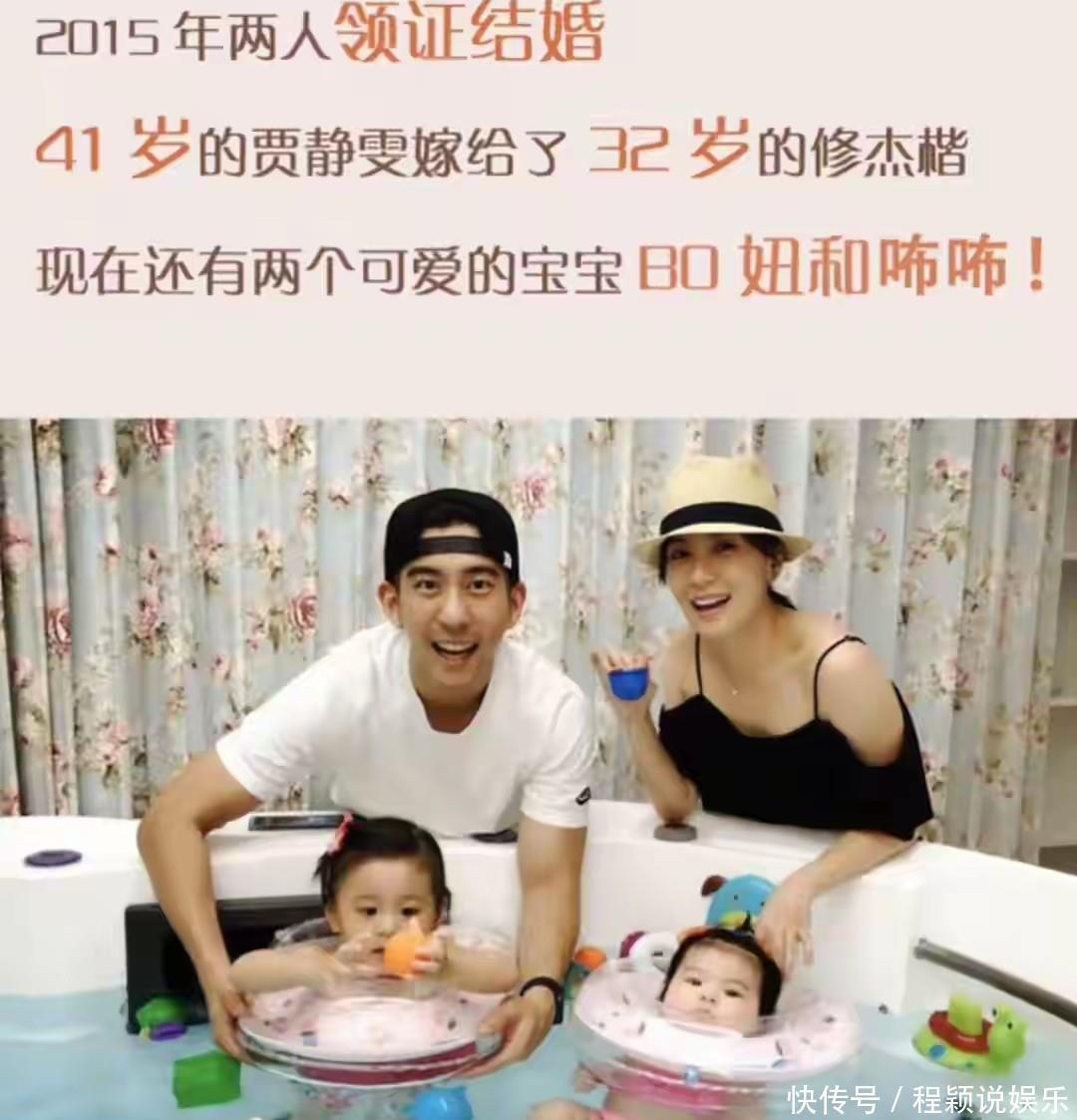 如今三个女儿都已经健康长大,现在本该是等待女儿学业有成的阶段了。而且再过几年,事业有成的她自己也可以选择退休了。可就在一切看着岁月静好之时,比自己小9岁的老公却在这时被警察带走,还很有可能面临牢狱之灾。两段婚姻熟悉贾静雯的朋友应该都知道,贾静雯的现任老公修杰楷是她的第二段婚姻。尽管两人相差9岁,但站在一起时却看不出任何年龄差。这不只得益于贾静雯天生丽质的美貌,也和她后期与修杰楷的安稳美满家庭生活密不可分。2014年已经40岁的贾静雯经过朋友介绍和31岁的修杰楷相识。
